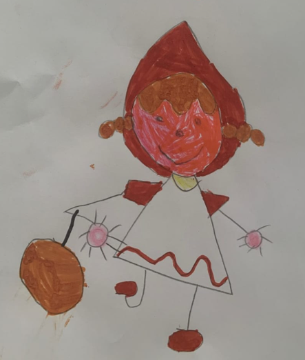 Regarde les différentes étapes du dessin et dessine le petit chaperon rouge.